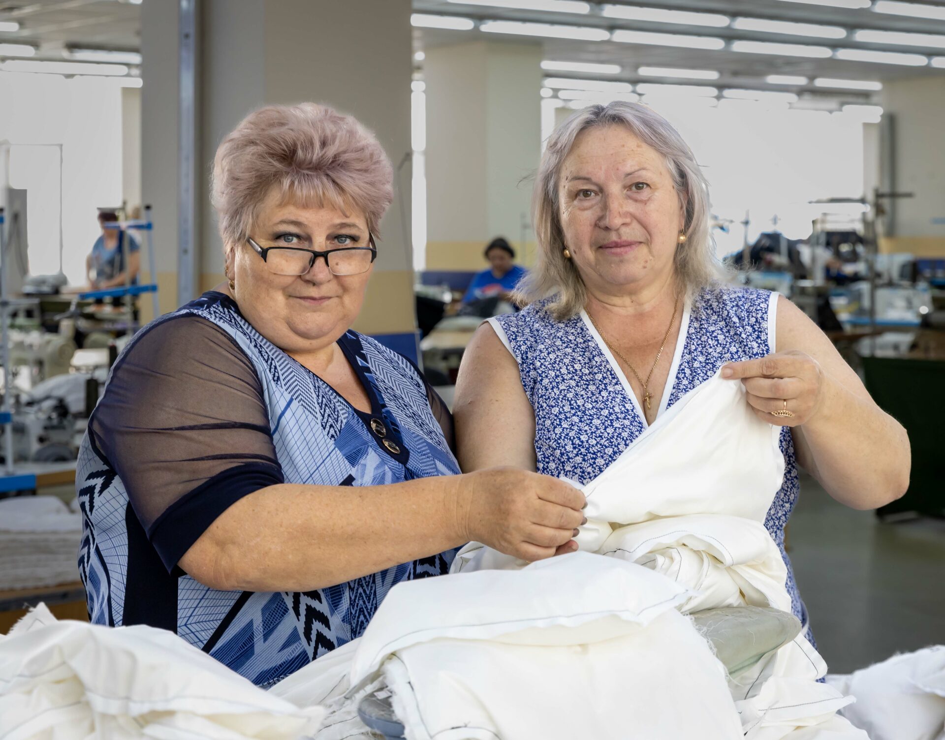 Мои героини родом из того времени, когда люди были более постоянными и более ответственными. Они не могли представить себя на другой работе, им сложно было даже на больничный выйти и оставить свою бригаду на короткое время. На больничном за всю жизнь бывали раз пять, и то только по болезни детей. Сегодня у каждой из них по 15 человек в бригаде, а раньше было по 30. И к каждому нужен подход, признаются. С одной нужно поговорить по душам, другую обнять, иногда приходится и строгость показать. Но со временем они стали одной большой семьёй, ведь на фабрике немало тех, кто десятки лет трудится здесь, кто предан этой работе, этому месту, этому коллективу.