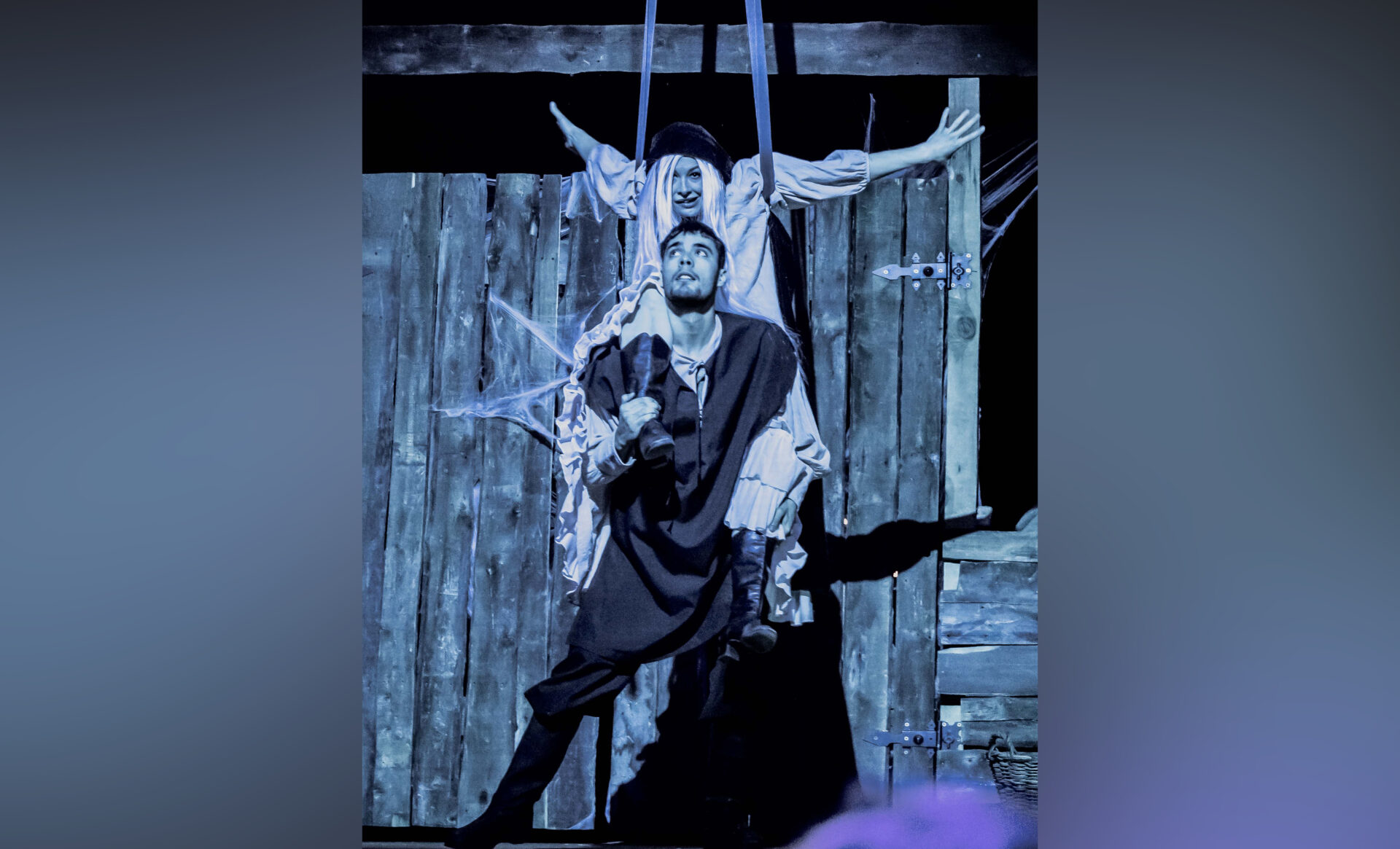 Каждый хорош и органичен в своей роли. Особенно зрителей поразили сценография и свет. Всё это дело рук Дмитрия Доброхотова, впрочем, идея сценографии принадлежит и была разработана руководителем народного театра. «Очень нам помогли с реквизитом заведующий ДК села Протягайловки Юрий Роговой и руководитель цирка «Юность» Михаил Кистол, – делится Ольга Доброхотова. – Паутина, люстра, бочки, кнут, вёдра – всё это предоставлено ими».