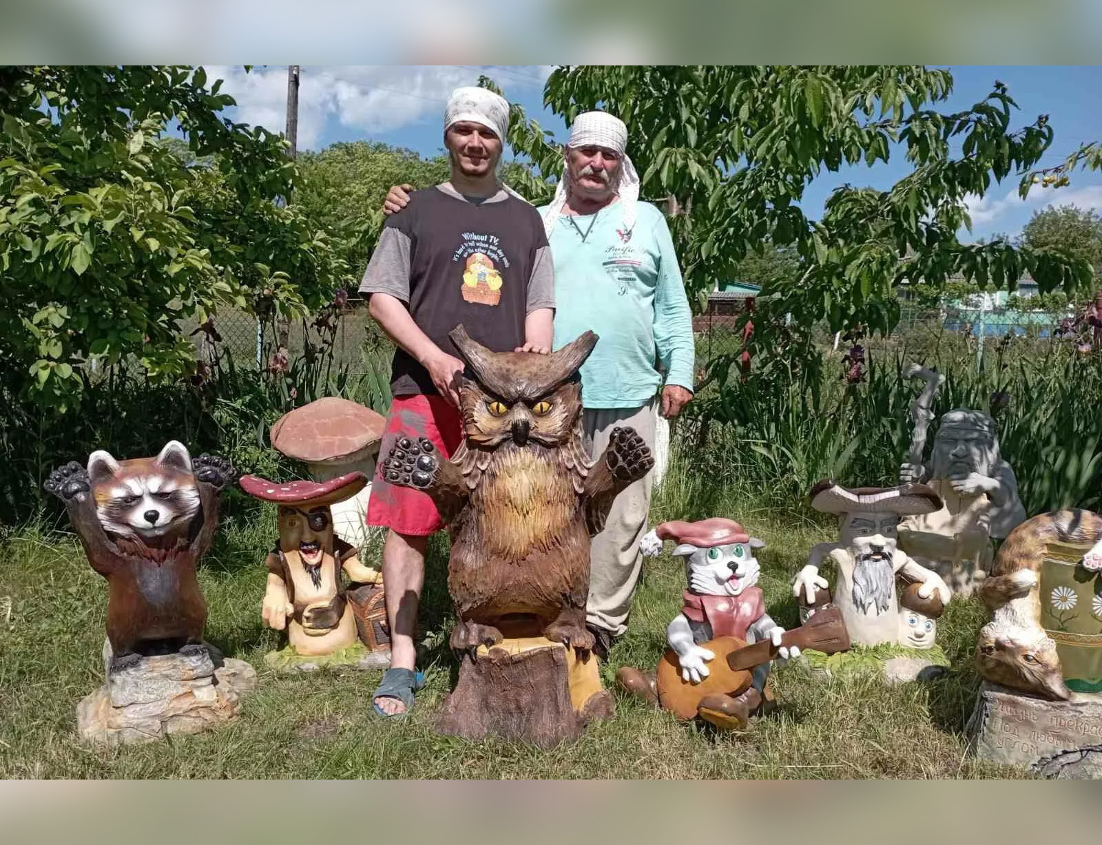 Все они давно «прописались» во дворе семьи Белых из села Красненькое, и с началом лета он стал пополняться новыми обитателями – вот шалунья кошка, у которой «жизнь прекрасна под любым углом», а вот «страшный» и смешной пират… Это всё объекты садово-паркового искусства, которые так украшают нашу жизнь. А создают их самобытные талантливые скульпторы отец и сын Николай и Анатолий. Они знакомы нашим читателям по серьёзным масштабным работам – скульптуре Архангела Михаила на въезде в Рыбницу, композициям в селах Белочи и Гараба…