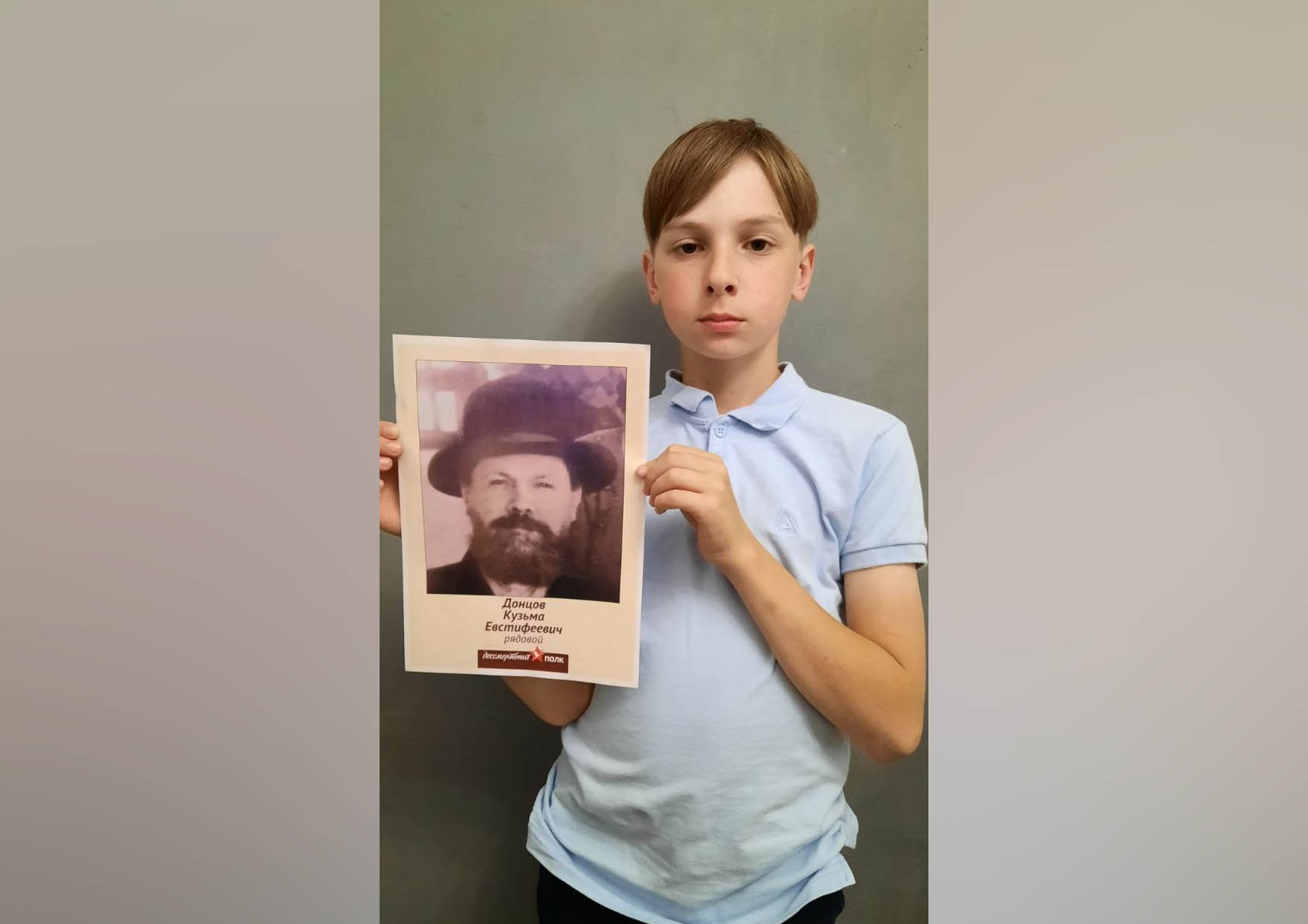 Для меня это великий праздник, праздник Победы над немецко-фашистскими захватчиками. Это радость со слезами на глазах, так как эта Победа далась нелегко – ценой многих жизней. Мой прапрадедушка Донцов Кузьма Евстифеевич, иконописец, прошёл две войны подряд: Великую Отечественную и советско-японскую и вернулся домой к жене и шести дочерям. Про него даже написано стихотворение. Мы в семье трепетно храним память о нём.