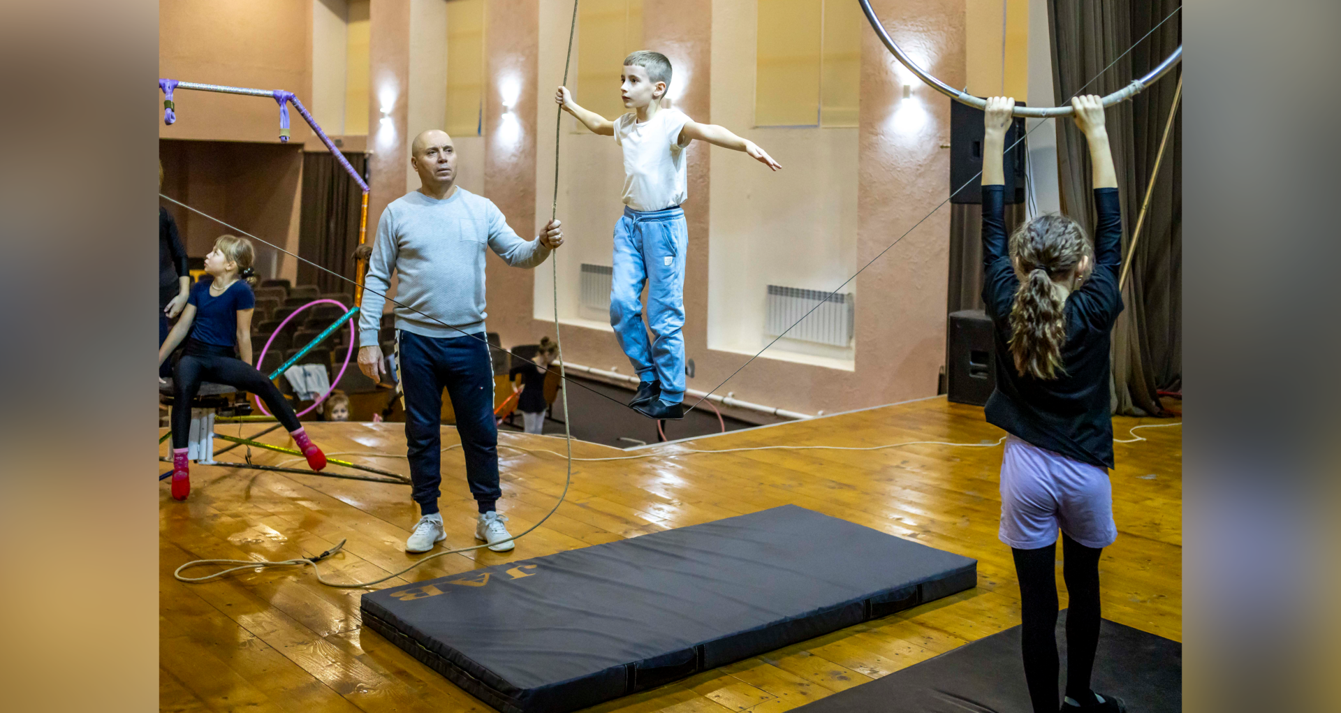 Сегодня в коллективе есть немало перспективных начинающих артистов. Например, 14-летний Давид, сын талантливого эквилибриста Марчела Зорина. А его пятилетняя дочь Эмилия наряду с Марией Ипатий и Викторией Томовой – самые младшие из «Энтузиастов». Стоит также упомянуть эквилибриста на свободной лестнице Дениса Чумакова, его брата Артёма, чья специализация – эквилибристика на катушках. Впечатляют успехами воздушные гимнастки на бамбуке Анна Негруцци и Анна Боварь, всего за месяц в работе с хулахупами многого достигла новичок коллектива Лидия Писарь. «Ветеран» цирка Елена Скворцова в 53 года продолжает творить чудеса с обручами.