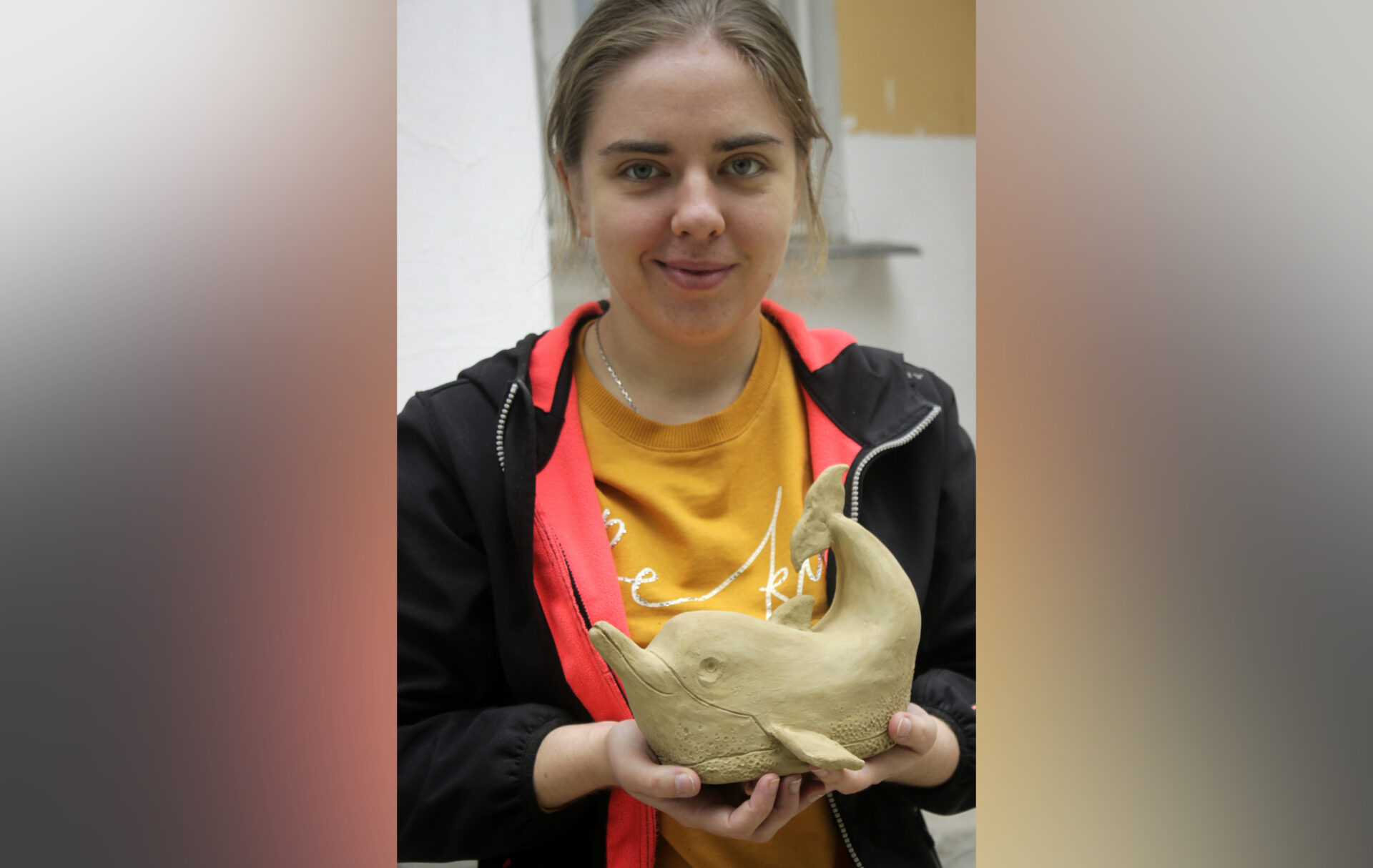 Как и других студентов, Александру Малютину интересуют фольклорные мотивы, которыми изобилует искусство многонационального Приднестровья. Её особая любовь – декоративно оформленный, представленный в керамике мир флоры и фауны. С большим удовольствием Александра работает над зооморфными фигурками. Сотворённый ею дельфин несомненно послужит достойным украшением серии.