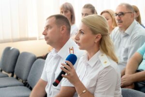 – Хочу спросить о том, что волнует не только меня, но и коллег – о форменном обмундировании. Сотрудники центрального аппарата практически не обеспечены формой, хотя минюст входит в силовой блок. Для нас форма – это элемент статуса, элемент имиджа госслужащего. И хотелось бы услышать ваше мнение относительно перспектив обеспечения нас формой, – сказала первая выступавшая.