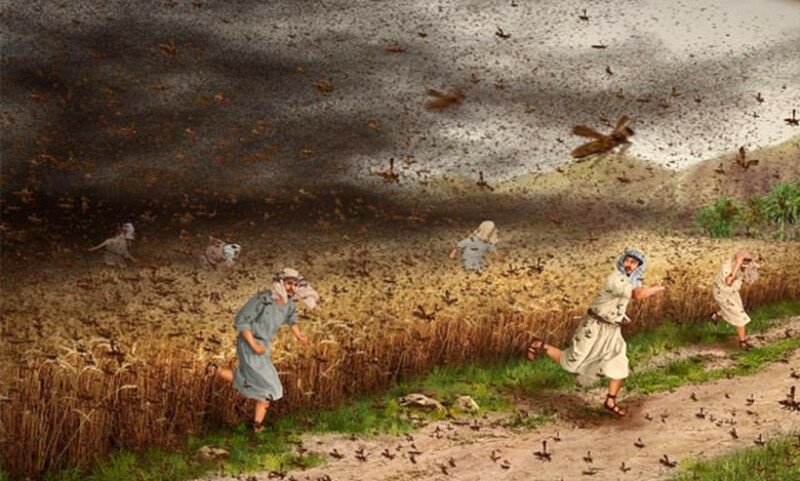 Что может чувствовать человек, попавший в эпицентр многомиллионной, а то и многомиллиардной стаи саранчи, способной полностью заслонить солнце, когда наступает так называемая «саранчовая ночь»? Разумеется, люди впадают в глубокий шок, происходящее кажется нереальным, мистическим, апокалиптическим. Вдобавок представьте, что такие стаи летят со звуком, напоминающим гром – это скрипят неисчислимые множества маленьких крылышек. Нет, гигантских крыльев единого роя, оружия массового уничтожения, настоящего крылатого Армагеддона! Передвигаясь со скоростью более 15 км в час, стая делает остановки, методично и полностью уничтожая зелёные луга, поля, пастбища, сады. Скопление саранчи в 150 млн особей на 1 кв. км за день пожирает количество пищи, эквивалентное дневному рациону 35 тыс. человек. В 1824 году северное Причерноморье подверглось очередному нашествию саранчи, о котором пребывавший тогда в ссылке в Одессе молодой А. Пушкин написал знаменитый озорной отчёт:
