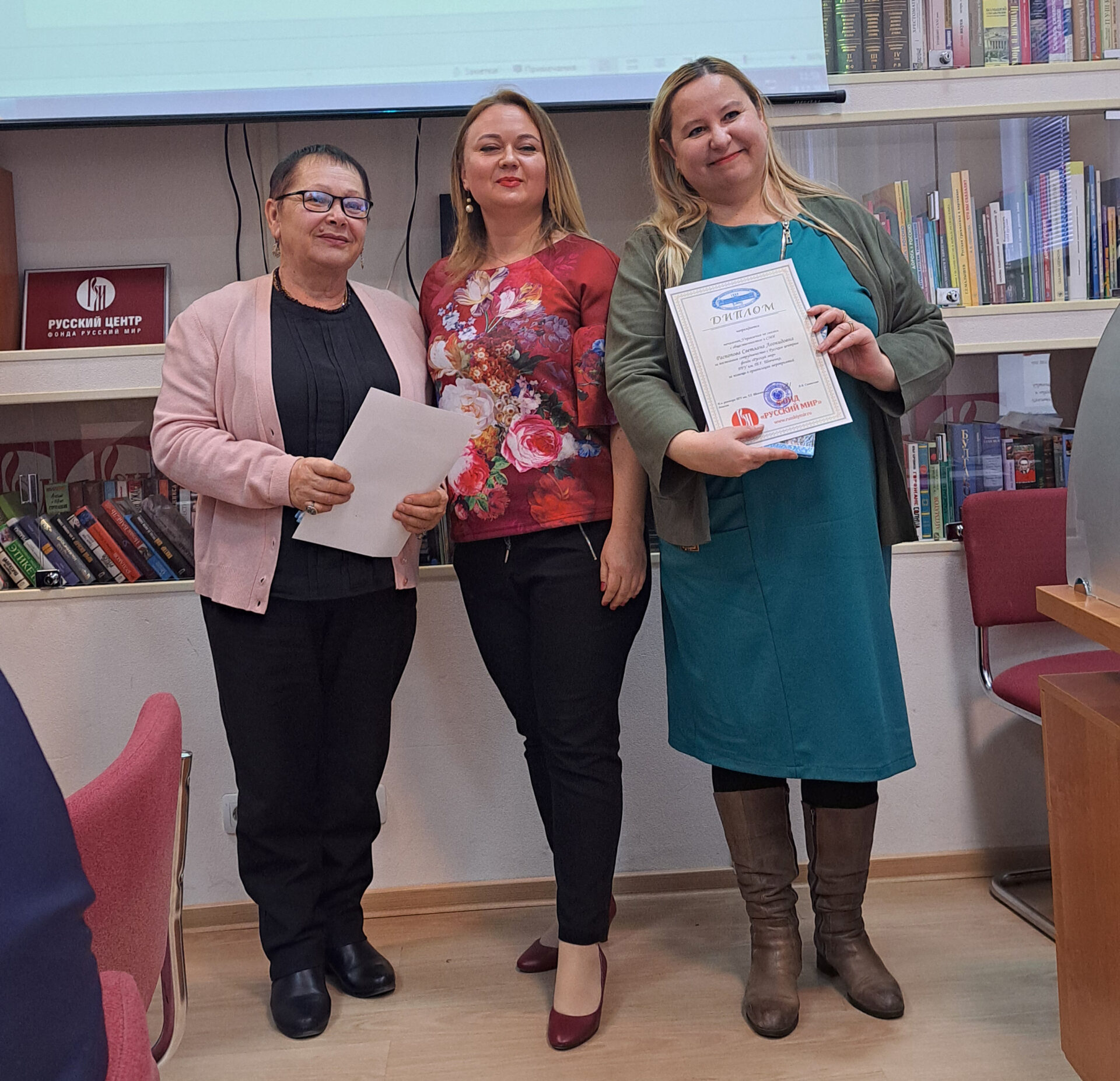 За активную совместную просветительскую работу, посвящённую русской культуре, ряду партнёров Русского центра, преподавателям и студентам вуза были вручены благодарности, грамоты и подарки.