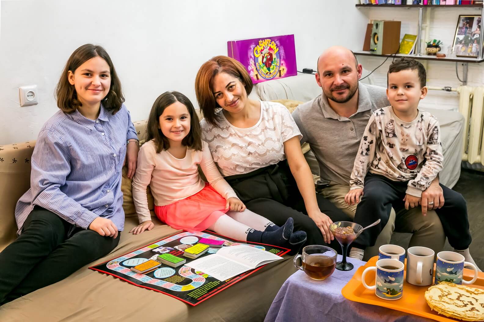 Так случилось и в дружной и большой семье Прокопец. Папа Денис и мама Алена являются родителями троих детей: двенадцатилетней Арабэллы, семилетней Каролины и четырехлетнего Мирослава. В тот день, когда наш фотокорреспондент Виктор Громов побывал у них в гостях, семья Прокопец находилась дома в полном составе. И более того, к встрече подготовилась: напекла блинов с медом и вареньем, заварила ароматный чай и, устроившись на диване, в ожидании играла в увлекательную настольную игру. В их уютной современной квартире было много света: он исходил то ли из окон, то ли от самих гостеприимных и радушных хозяев. В беседе они рассказали, что в эти дни карантина еще больше проводят времени вместе, еще больше смеются и обнимаются. И, несмотря на все переживания, вызванные пандемией коронавируса, получают от возможности никуда не спешить истинное удовольствие. Ведь все они в эти дни находятся там, где тепло и уютно каждому человеку, где стремится быть каждый из нас – в кругу своей семьи. О том, чем же можно заняться с детьми во время карантина, и еще об одной истории, когда муж и жена стали по-настоящему родными людьми, и расскажет наша новая рубрика «В кругу семьи». В ней вы также найдете стихи для самых маленьких и познакомитесь с очаровательной юной тираспольчанкой, принявшей участие в нашем стартовавшем недавно конкурсе «Фотогалерея «Самая красивая улыбка».