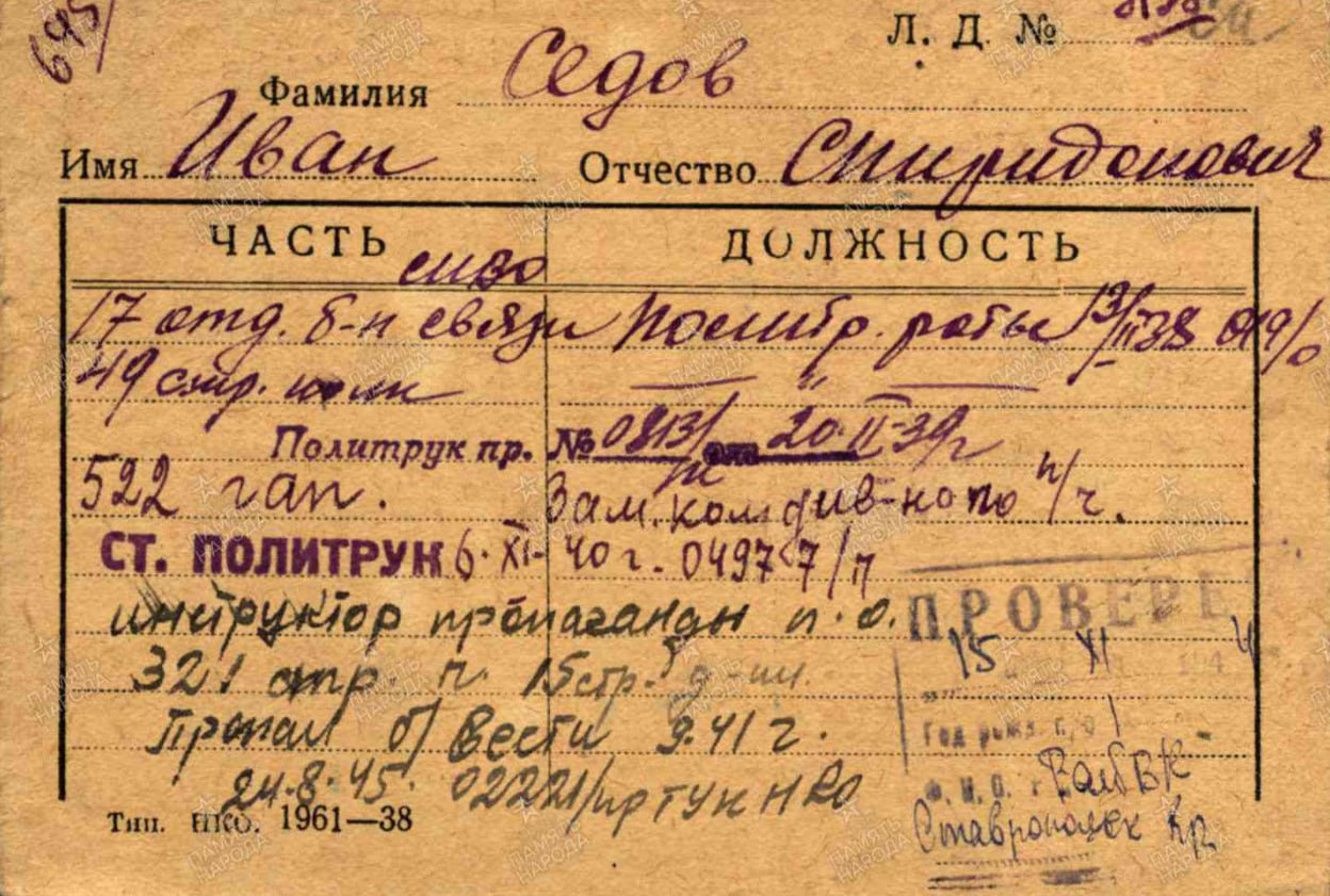 Обращался Владимир Иванович в ЦАМО (Центральный архив Министерства обороны РФ). Получил отписку о том, что 321-й стрелковый полк был сформирован в 1942 году, а в его списках старшего политрука Ивана Спиридоновича Седова не значится. 321-й мотострелковый полк мужественно сражался вместе со своей дивизией в приграничных районах Молдавии. А 15-я моторизованная дивизия – соединение с очень богатой боевой историей. Не зря она носила почётное наименование Сивашской. Изначально называлась Инзенской революционной – по меcту формирования 30 июня 1918 года в городе Инзе тогда Симбирской губернии (ныне Ульяновская область). Сивашской стала после упорных боёв в Крыму на заключительном этапе Гражданской войны. Так что просто исчезнуть из архивных фондов эта часть с приданными ей подразделениями не могла. На сайте «Память народа» автору этой публикации удалось разыскать выписку из личного дела Ивана Спиридоновича Седова. Его звание и номер части, в составе которой он воевал, совпадают. Там указано, что отец Владимира Ивановича пропал без вести в сентябре 1941 года. Ошиблись архивисты из-за того, что после гибели в результате боёв в Белоруссии за шоссе Минск-Москва 5-го и 7-го мехкорпусов все механизированные корпуса в Красной Армии были ликвидированы. Их переформировали в стрелковые с сохранением нумерации. Соответственно, моторизованные дивизии и мотострелковые полки тоже поменяли названия. Части, входившие во 2-й мехкорпус, доблестно сражались на территории Советской Молдавии, в том числе и обороняли Приднестровье уже после того, как из ставки поступил приказ отступить за Днестр ввиду опасности попадания в окружение из-за тяжёлого положения войск Юго-Западного фронта. Именно на выручку ему, в то время как большая часть соединений 9-й армии (по сути, вся сухопутная часть довоенного Одесского военного округа, ставшая Южным фронтом) ушла на оборону Одессы, 2-й мехкорпус был послан на помощь северным соседям – Юго-Западному фронту – для противодействия вражеским войскам, стремительно рвавшимся к Киеву. Отслеживать боевой путь 321-го полка на газетных страницах достаточно долго. Тем более что он неоднократно передавался вместе с 15-й дивизией в состав других корпусов и армий, но неизменно возвращался в 2-й МК. 2 августа 1941 года все части корпуса попали в плотное кольцо. Предпринимались отчаянные и безуспешные попытки прорвать его. «Попытка выйти из окружения ударом на юг скована обороной и последующим наступлением противника с юга. На успех прорыва надежды мало. Подрываем орудия, уничтожаем транспорт, кольцо окружения сжимается», – это было одно из последних донесений Военного совета 6-й армии, которой тогда был придан 321-й (уже переименованный в стрелковый полк), датированное 5 августа.