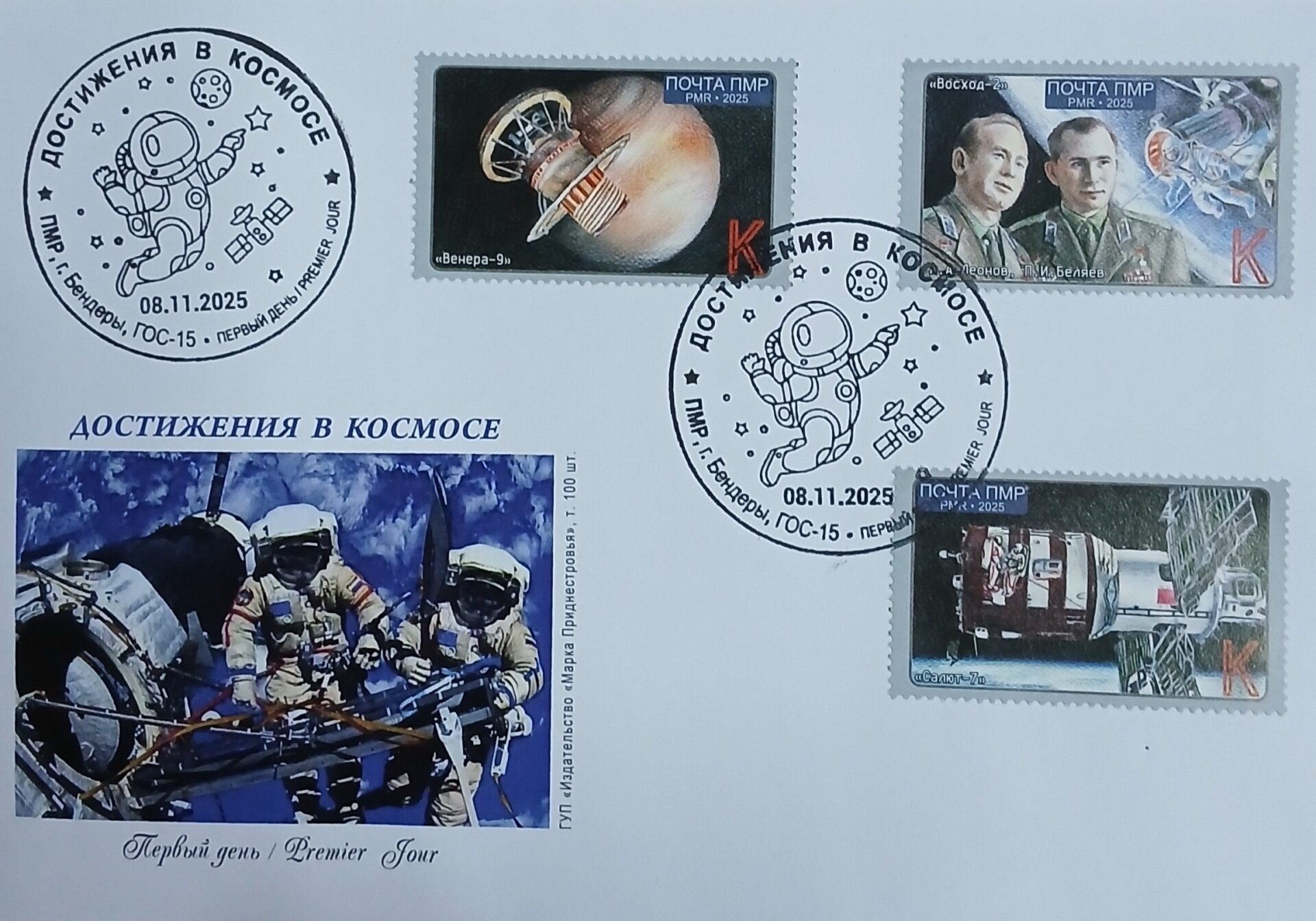 Начиная с 2023 года, это уже пятая серия «космических» марок. Директор ГУП «Издательство «Марка Приднестровья» Всеволод Лаврентьев рассказал: «Для рисунка марки «Салют-7» мы впервые использовали кадр из одноимённого фильма. Также полностью рисованная марка – «Венера-9». А вот «Восход-2» – комбинированная: портреты космонавтов Алексея Леонова и Павла Беляева рисованные, а фон – компьютерная графика. Чаще всего на марках изображают одного пилота, Алексея Леонова, так как именно он первым вышел в открытый космос. Но ведь он летал вместе с Беляевым, который был командиром корабля». 18 марта 1965 года пилотируемый космонавтами «Восход-2» стартовал с космодрома Байконур. Во время полёта Алексей Леонов, впервые в мире выйдя в открытый космос, провёл вне корабля 12 минут и 9 секунд. Его выход транслировали по телевидению. Через сутки космический корабль вернулся на Землю. Аппарат «Восход-2» должен был приземлиться в степях Казахстана, но при посадке отказала автоматическая система ориентации корабля. Садиться пришлось вручную, и «Восход-2» приземлился в тайге. Космонавтов обнаружили через несколько часов, но из-за погодных условий и особенностей местности эвакуировать удалось только через два дня. Об этих событиях, о героизме космонавтов – в российском историческом фильме «Время первых».