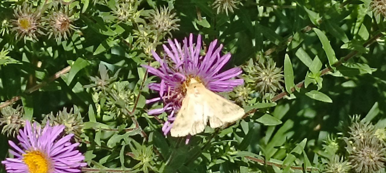 Первыми попались на глаза несколько крупных экземпляров вида перламутровка Аглая. Резвые, стремительные, ярко-рыжие летом, к осени эти бабочки слегка «поистрепались» на вид, но ведут себя всё так же бодро. Краснокнижный дневной павлиний глаз обнаружился на этой буддлее в единственном числе. Он то сложит свои чёрные с исподу крылья, то неспешно развернёт их, показывая четыре шикарных «глазка» на бордовом фоне. Прелестная бабочка! А вот прилетел красавец-адмирал с алыми «лампасами» на тёмных крыльях, он подпускает близко, в отличие от пугливых пёстро-рыжих репейниц, которые тоже вертятся здесь. Капустницы, голубянки, какие-то безымянные для меня мотыльки… Пожалуй, наиболее интересным в этой компании оказался бражник языкан – некрупная и не очень яркая бабочка, зато напоминающая в полёте птичку колибри. Несколько бражников постоянно кружатся над цветущей буддлеей, орудуя длинными хоботками, за что их ещё называют хоботниками. Весьма трудно поймать их не то что руками, а даже в объектив фотоаппарата. Резвись, славный крылатый народец, наслаждайся недолгим осенним теплом и нектаром благодатной буддлеи Давида!